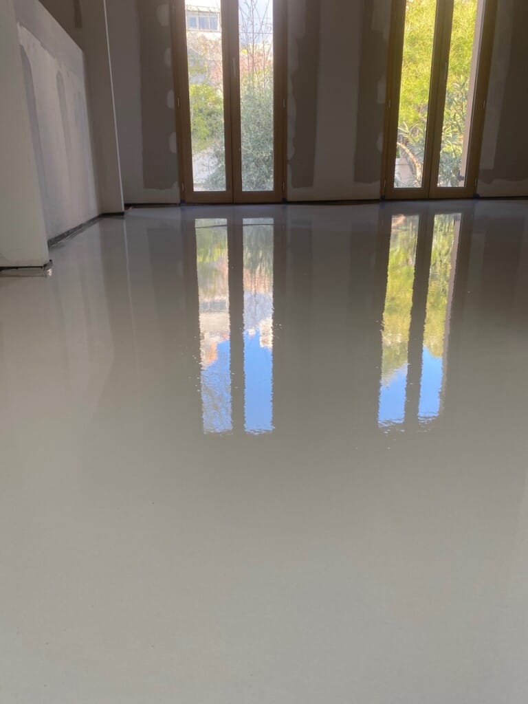 Voici la rénovation d un sol entièrement spatulé en béton ciré, le sol était précédemment recouvert d une moquette qui...